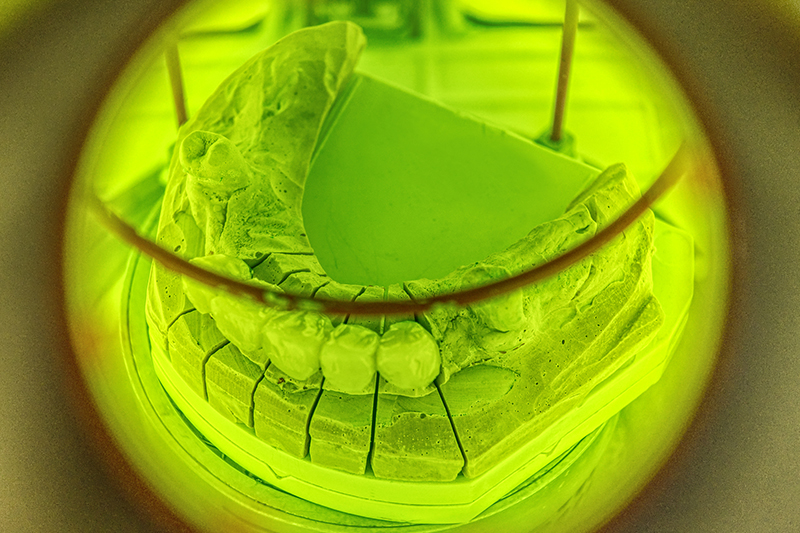 歯科技工所で使用する3Dプリンターは、つめ物・かぶせ物などを高い精度で作製することに利用されています。
