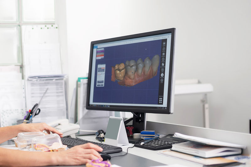 3Dスキャナや3D設計システムと連携することで、患者様にとっては型取りのストレスをなくすことができますし、歯科医院と歯科技工所間では物理的な型の配送などを省略することができます。